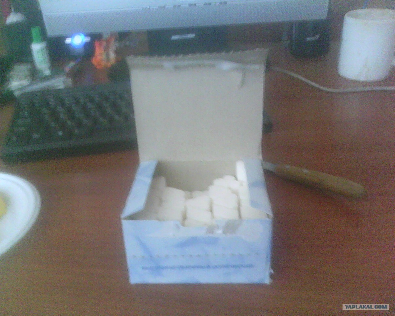 Достал сахар.