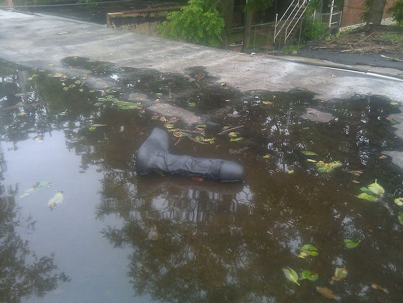 в данном случае не скамейка, а самая настоящая лужа, но сути это не меняет - хозяйка бросила!