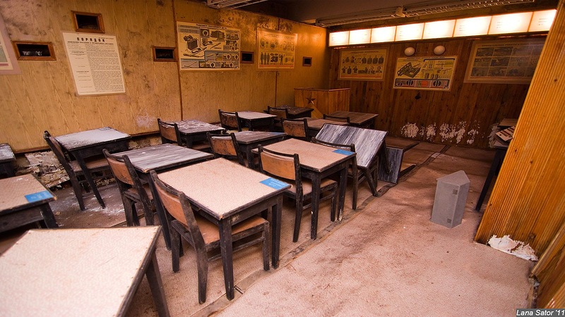 Под этим зданием находится убежище, состояние которого не поддерживается, отчего стены во многих помещениях облезли, а пол вздыбился.