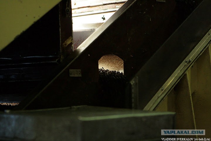 12. Поднимаемся на третий этаж, где происходить процесс дробления какао-бобов. Обратите внимание, решетки на лестнице, очередное напоминание о технике безопасности.