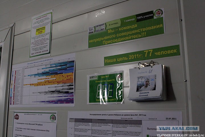13. Внутри очень шумно, поэтому Екатерина рассказывает нам основные моменты, на которые нужно обратить внимание. Также посмотрите на обилие различных табличек и надписей. Их очень много на предприятии.