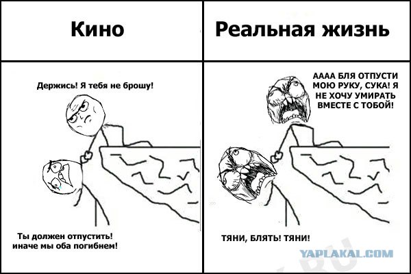 Не знаю, как там в кино, но в реальной жизни хрен бы я подошел к такому обрыву вообще. А если бы и подошел, то, вероятно, по пластунски, и чтоб рядом не было любителей по-дружески постучать по спине.