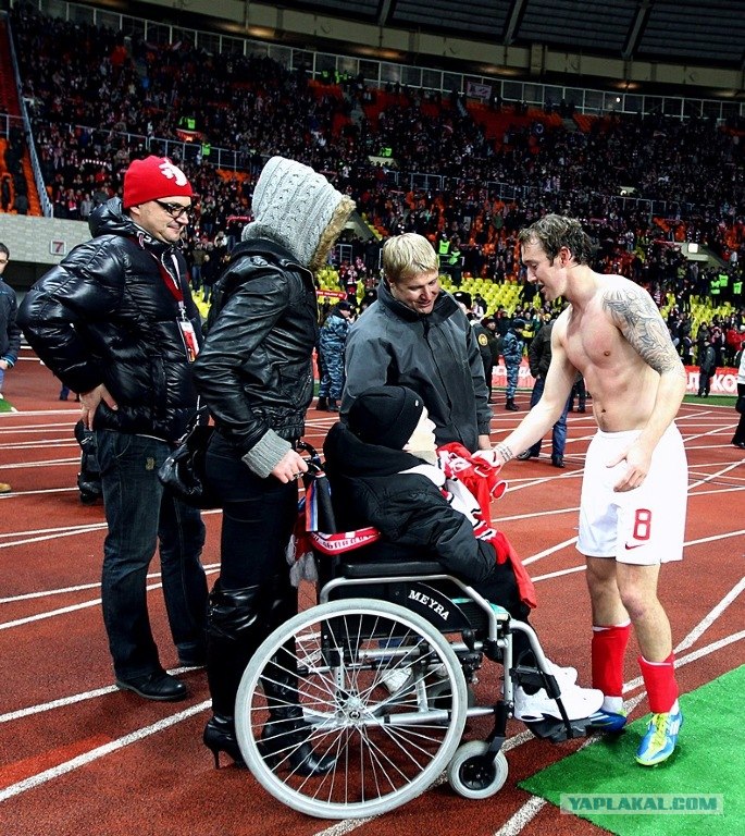 на матче с лохомотивом в том году Эйден Макгиди дарил футболку инвалиду