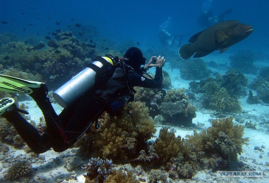 Вот тут я должен сказать особо. Дайверы народ очень интелегентный. Ну нельзя на рифах лапать всё подряд. На пляжах Египта везде стоят плакаты. " Не разрушайте рифы! Не ходите по ним! Не трогайте!" А руссо туристо пофиг. Я сам видел как пешеходоходящий турист вышел с пляжа с полной авоськой ракушек, молюсков и обломков кораллов! Блять, будто в супермаркет сходил, придурок! Ну нахрен ему это надо? Но нет! Усё соберу! Пусть сгниёт, но соберу!