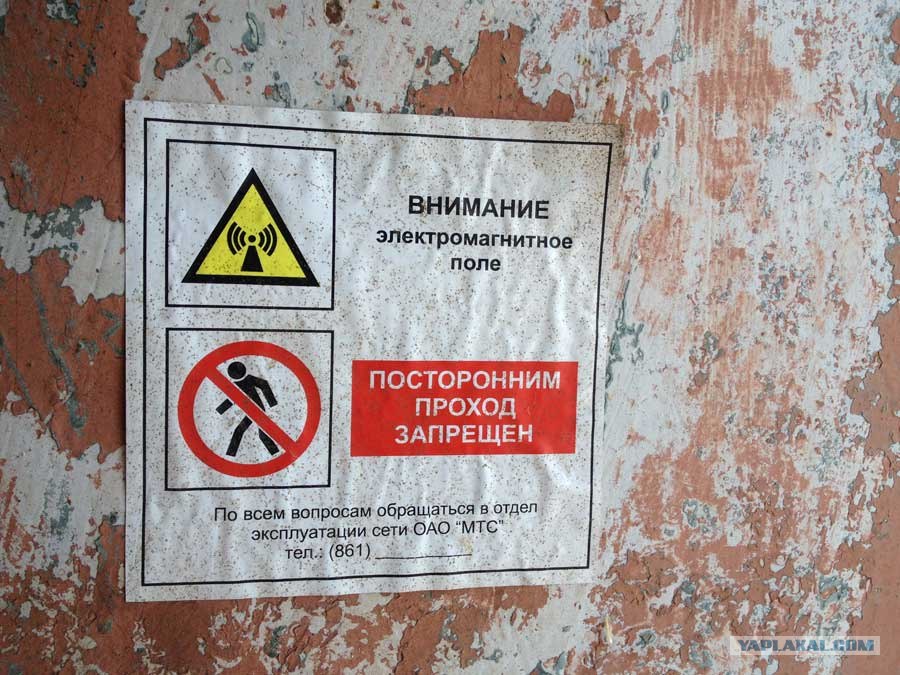 9. На входной двери, ведущей на крышу, висит такое предупреждение. Действительно, с таким количеством излучающих устройств, находится на крыше долгое время не очень безопасно.