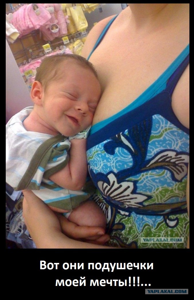 А что еще мужику надо для счастья? Еда и сиська) Ну или два в одном как у этого малыша)