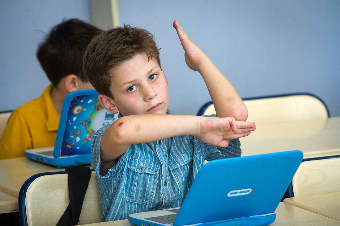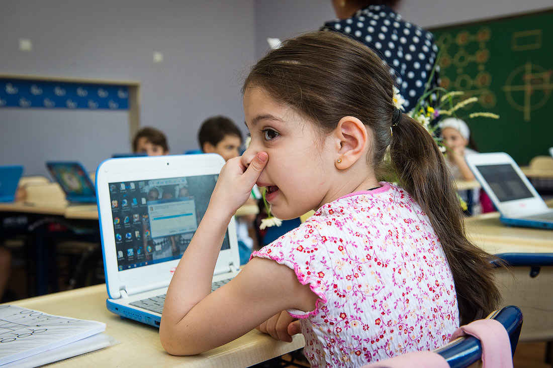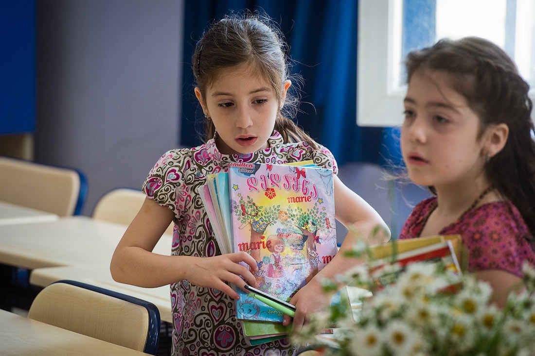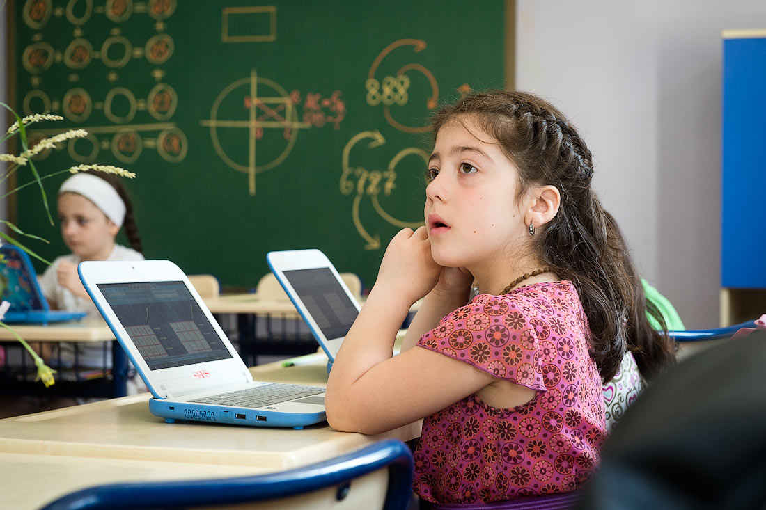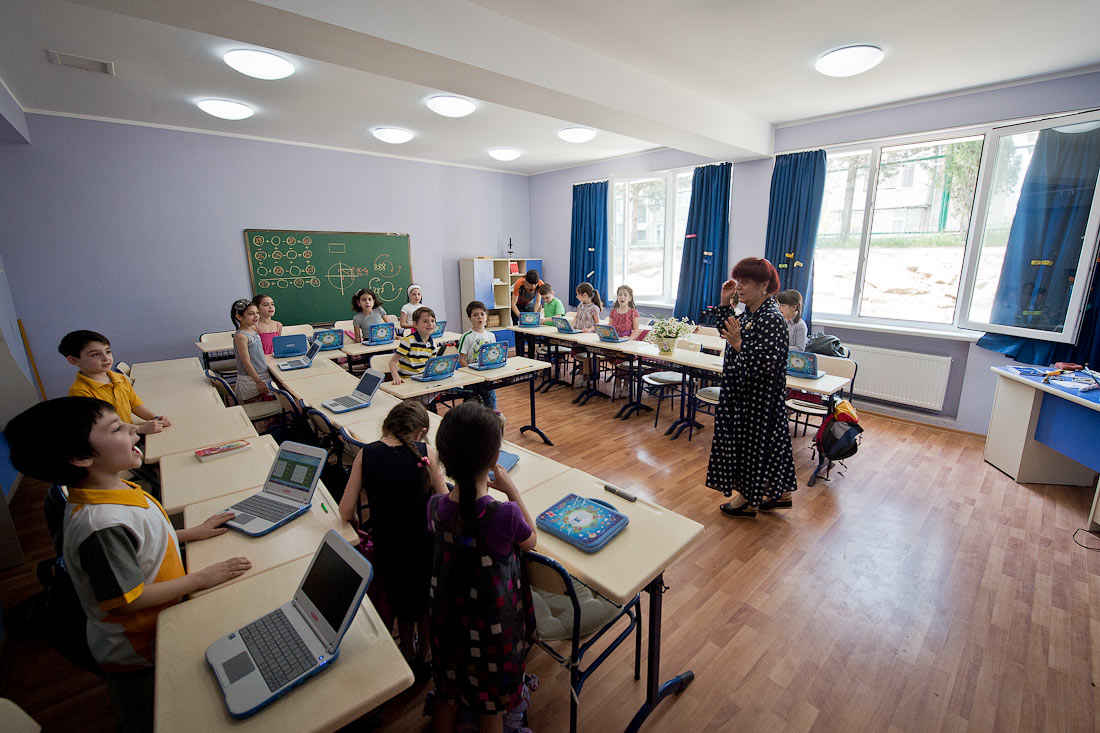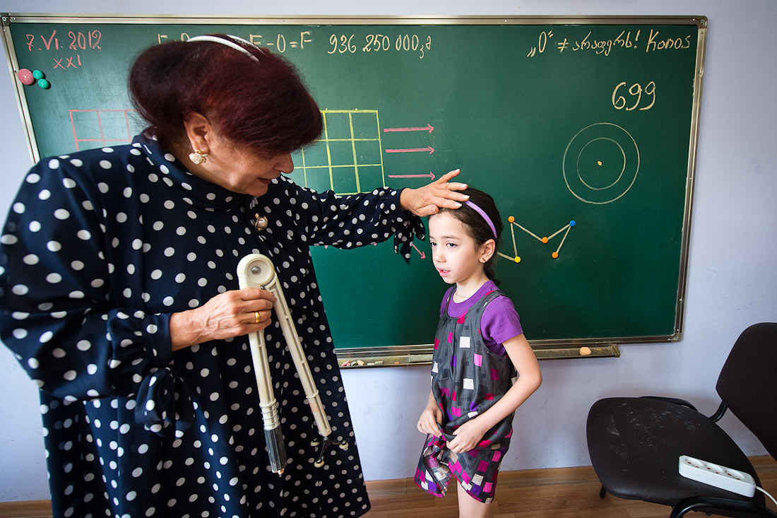 В этой тбилисской школе есть компьютерный класс, установленный оператором мобильной связи Geocell. Всего Geocell установил в грузинских школах более 100 таких классов. Понты, конечно, но грамотные. Говорят, детей из таких классов не выгнать — так всё интересно. Это не просто компьютеры на столах. Это и сенсорная доска, и видео, и отличная звуковая система в потолке — извержение вулкана на доске с таким звуком производит неизгладимое впечатление.