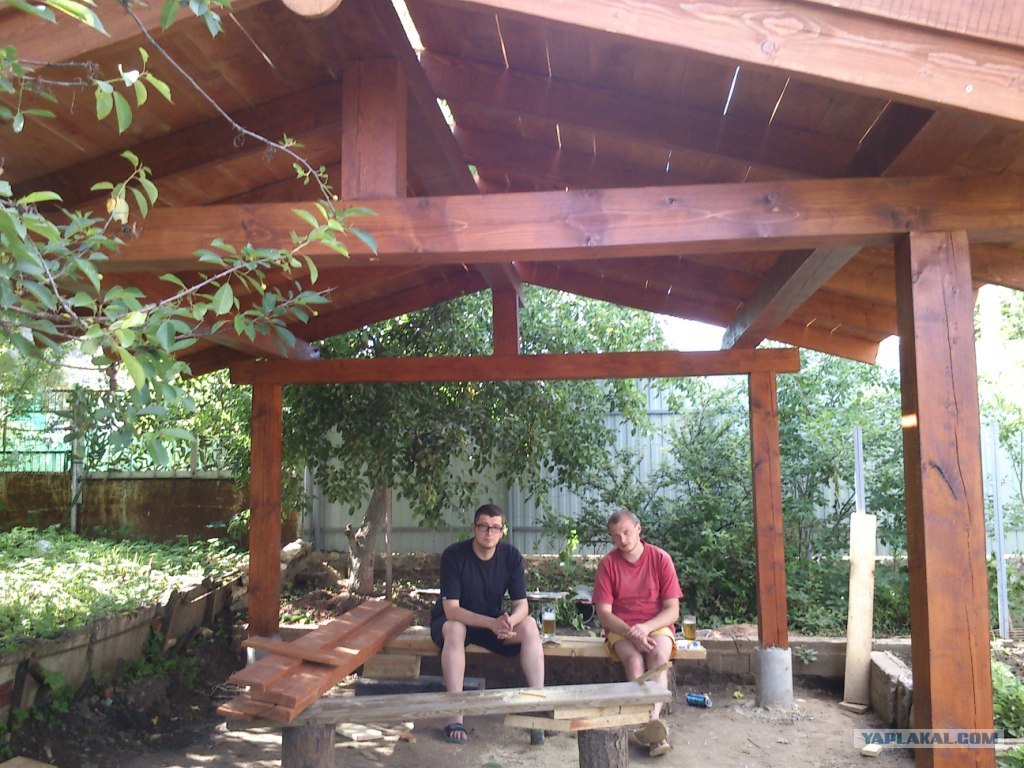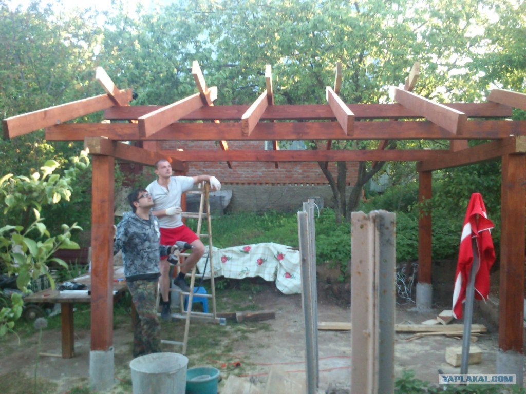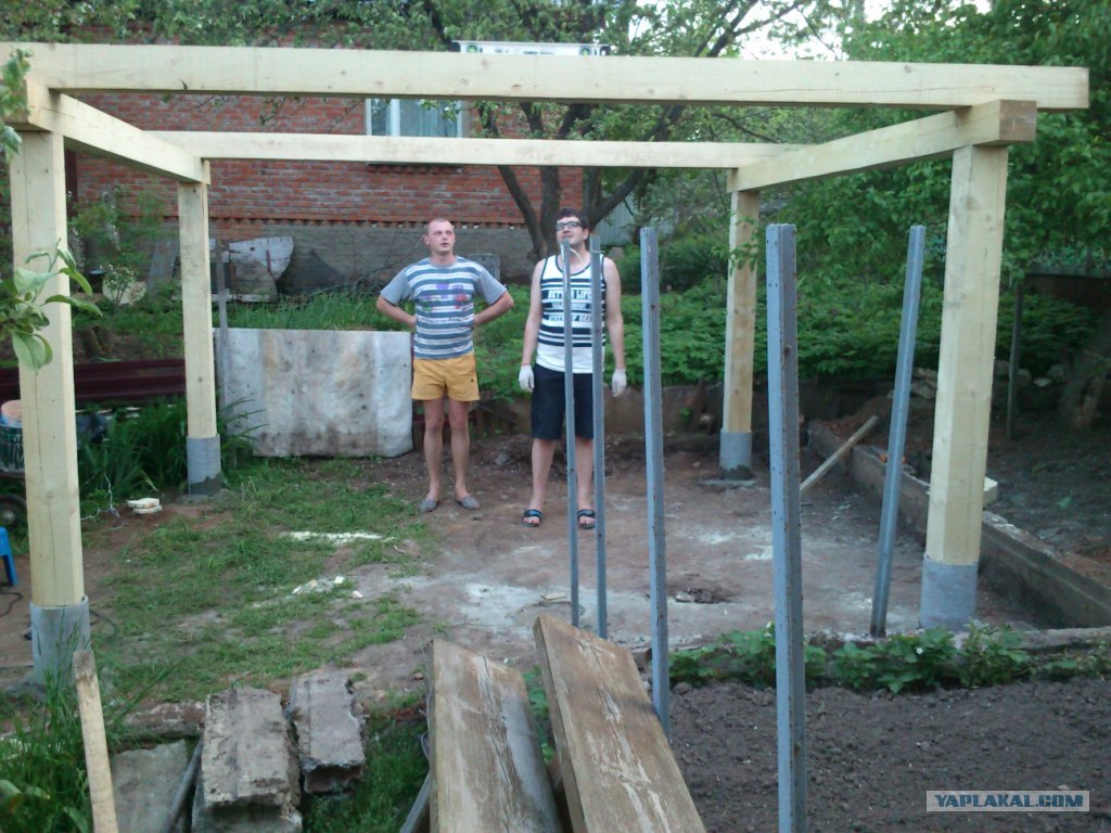 Единственный косяк, ИМХО, брус вставлять в трубы не надо было...