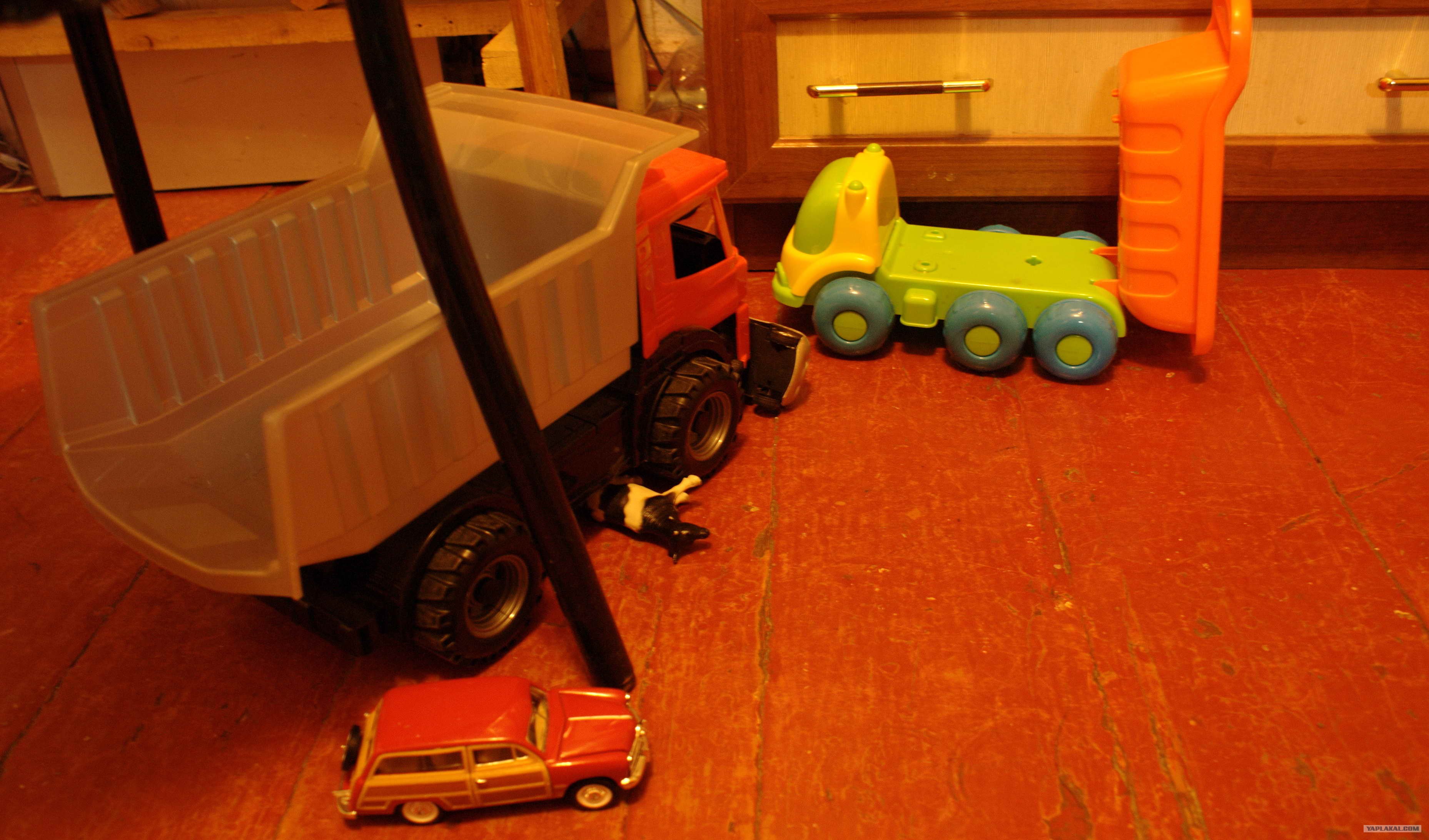 Водитель грузовика в данный момент спит сладким сном в своей люльке.