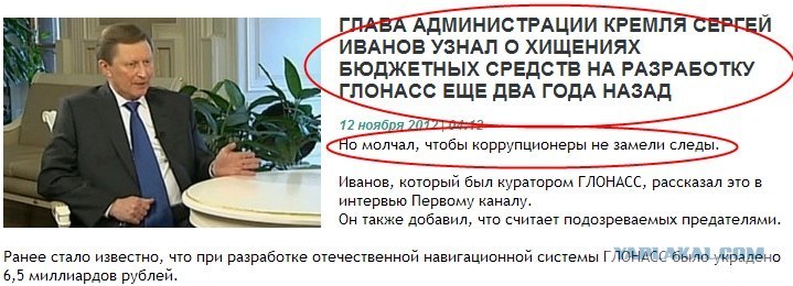 Главному разведчику (Иванову) 2 года назад доложили: в ГЛОНАСЕ украли 500 млн. руб.