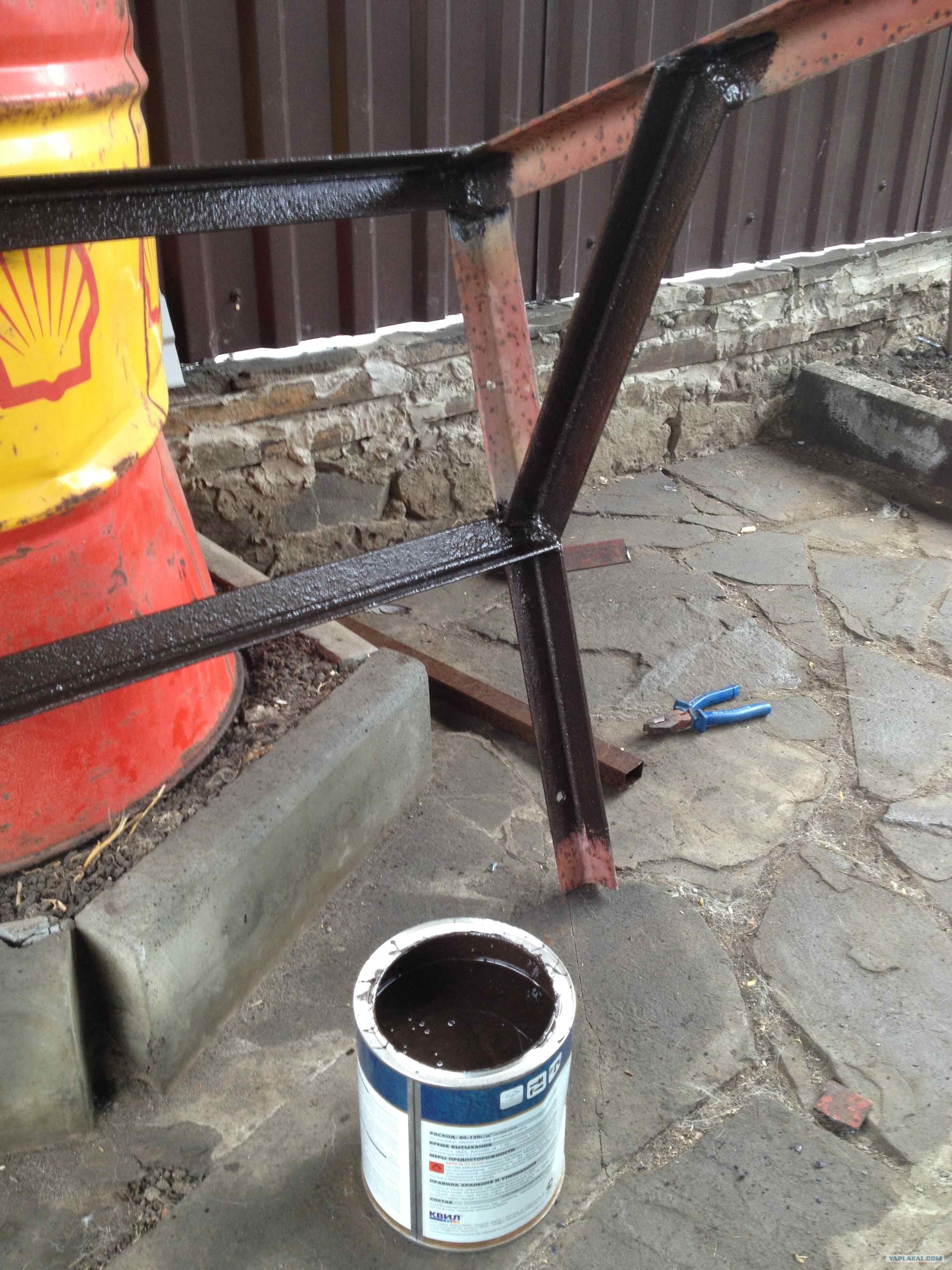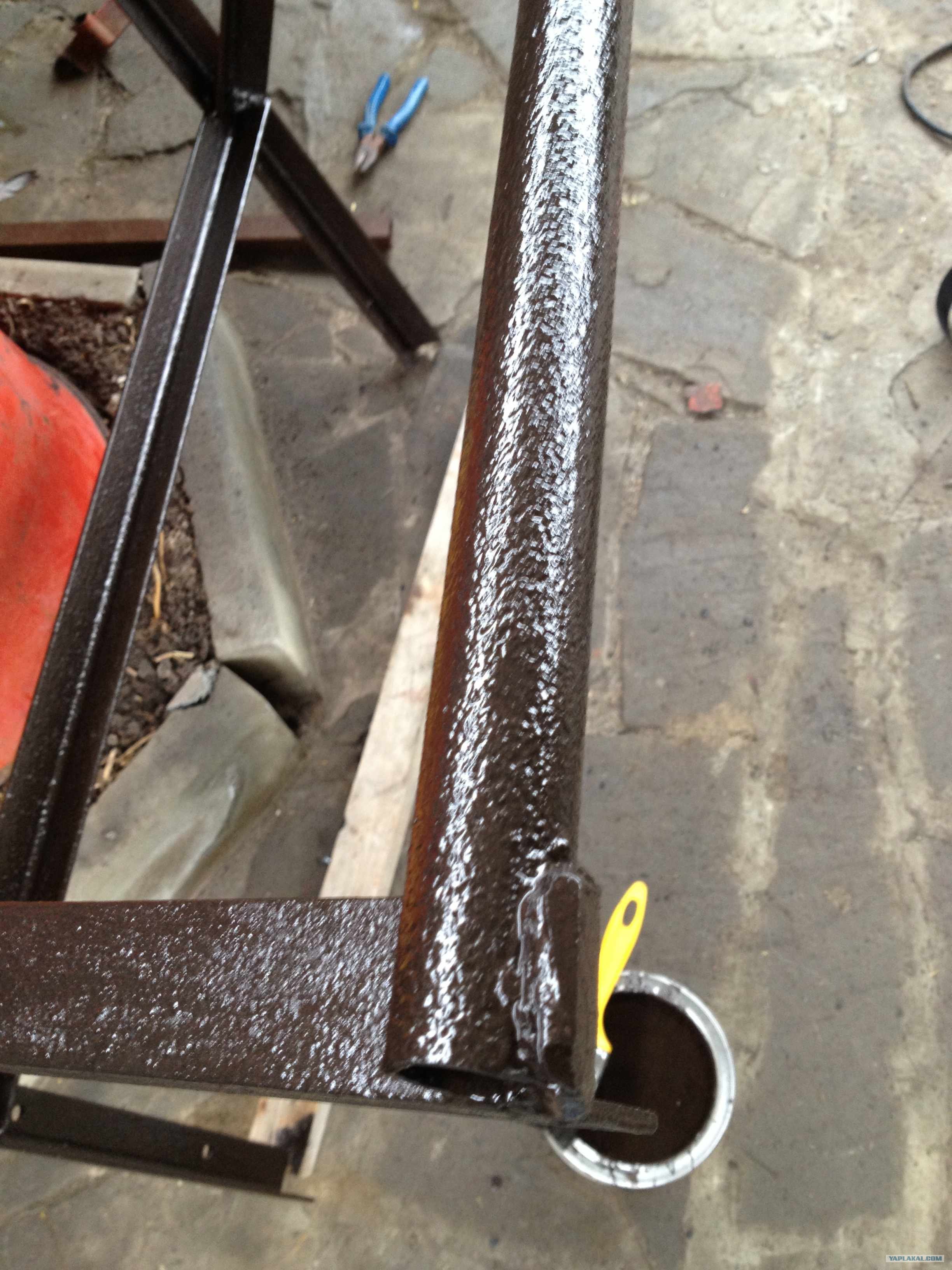10. Красим. Брал краску с молотковым эффектом, она дорогая (850р. большая банка) но ничего другого не было.