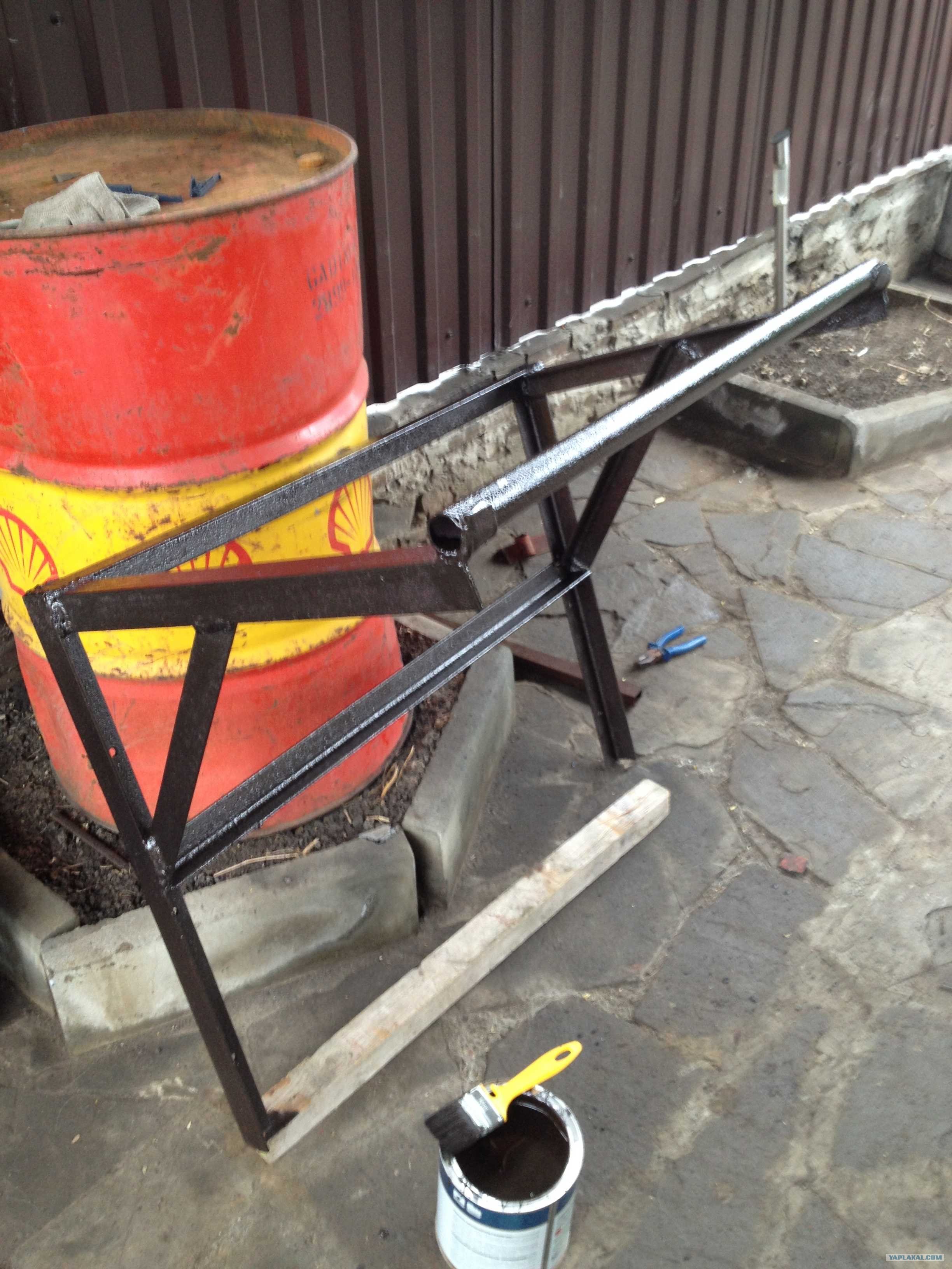 Сильно мудреный. Я делал по по принципу как на фото. Вместо трубы откопал во дворе реактивную штангу с Жигулей, обрезал сайлентблоки и загнул концы для широкого хвата.