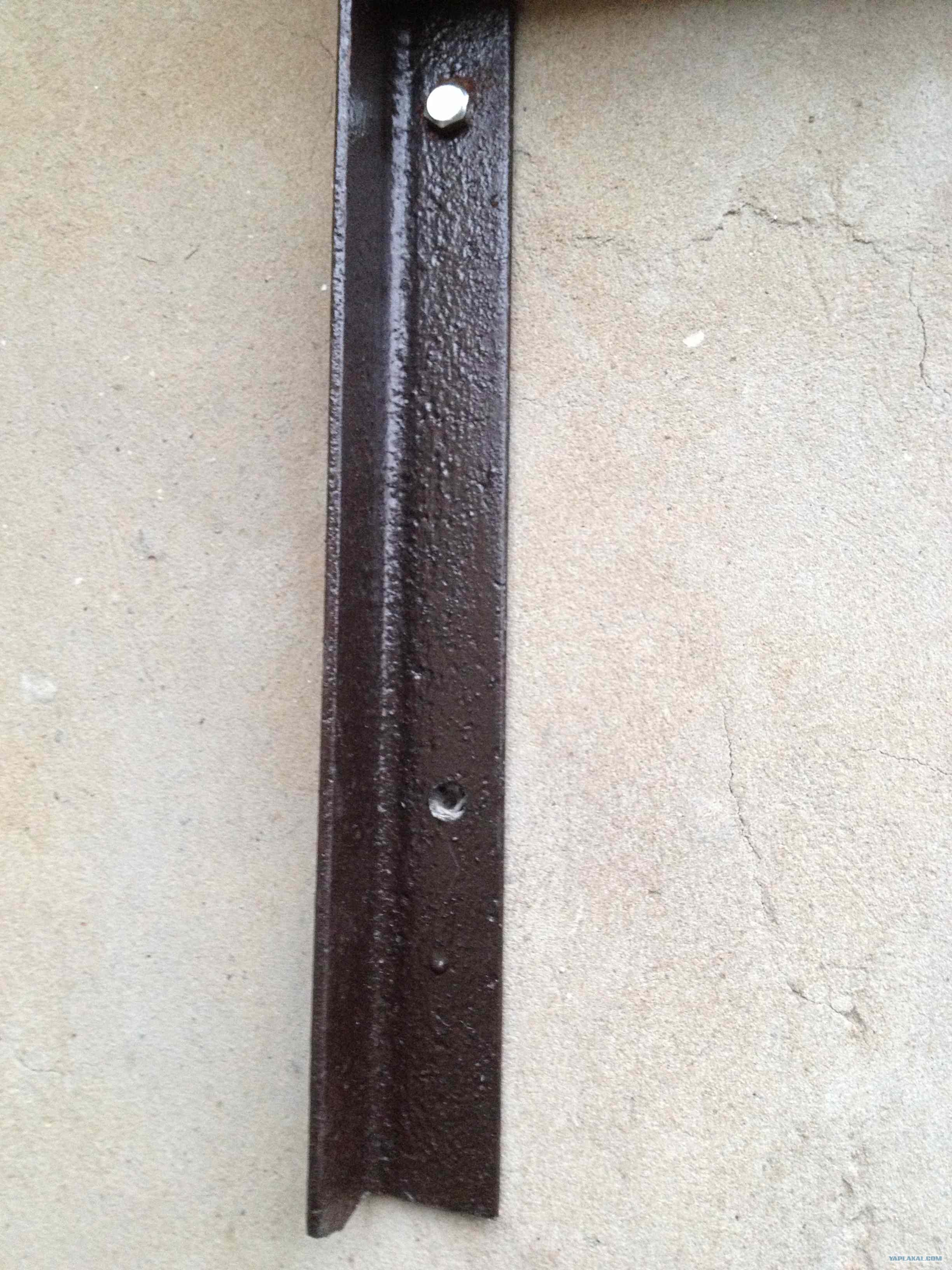 14. Закрутил 4 болта, и у одного сломалась шляпка, не стал пересверливать все дырки, турник прекрасно весит на 5 болтах.