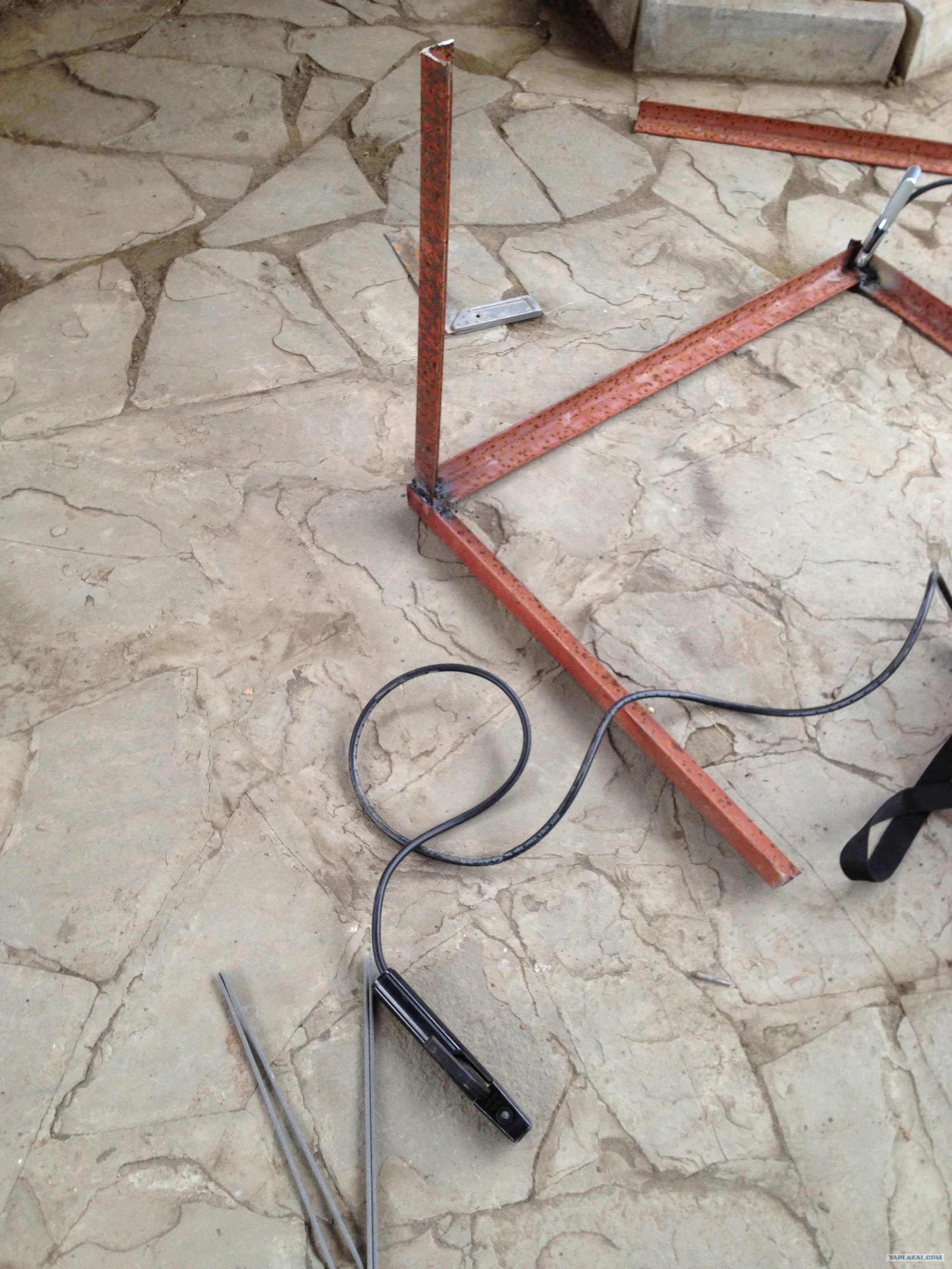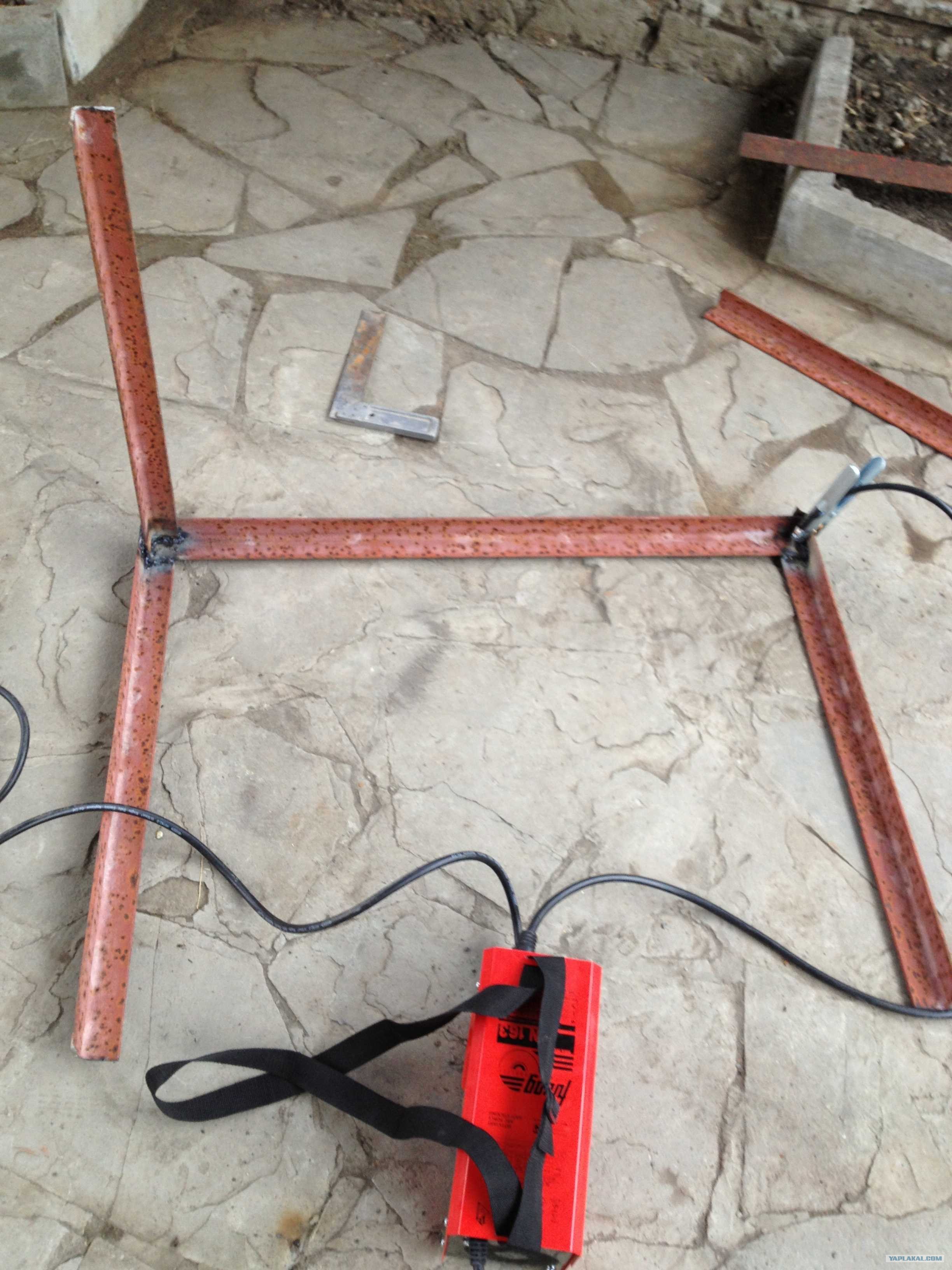 2. Итак, нашел материал, основной каркас это обычный уголок, размер не знаю. Думаю как я его нарезал никому не интересно, так что сразу следующий этап. Сваркой пользовался 3й раз в жизни.