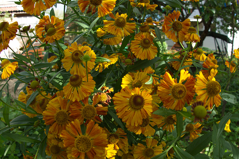 Разные птички скачут довольно смело, потому что людей уже мало. Цветут осенние цветы: астры и хризантемы почти всех цветов радуги. Заморозков еще не было, поэтому бархатцы тоже радуют своим видом. Они разрослись в пышные кусты, усыпанные крупными цветами. Розы будут стойко держаться до самых холодов.