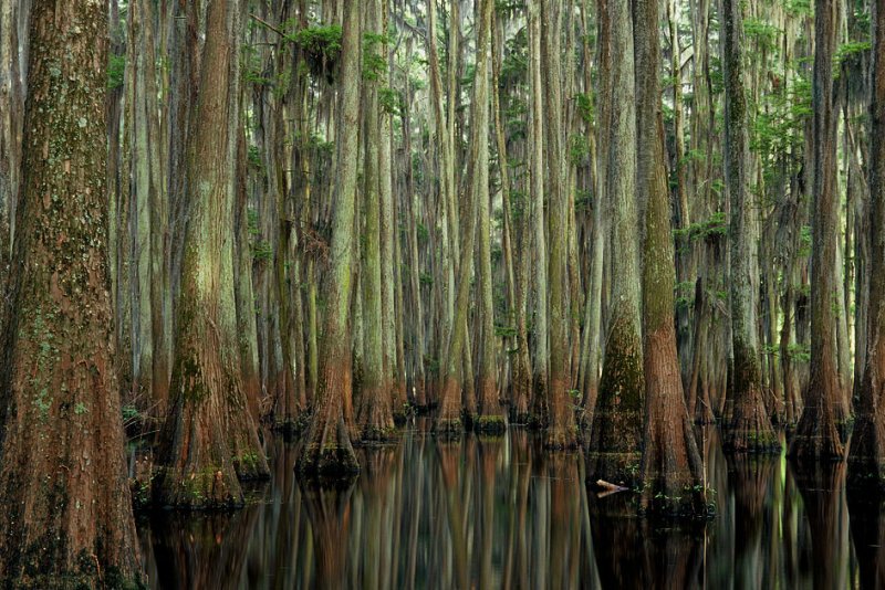 21. На кипарисах висят пряди испанского мха, зеленые зимой и серые летом. Испанский мох не является паразитом, это лишайник, использующий растение-хозяина только для поддержки. Питается растение самостоятельно, добывая пищу из воды и воздуха. Этим объясняется тот факт, что в зимний период, получая достаточное количество влаги, мох становится зеленым. Однако испанский мох все-таки вредит кипарисам, окутывая его ветви и перекрывая доступ солнечного света.