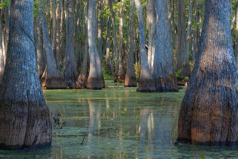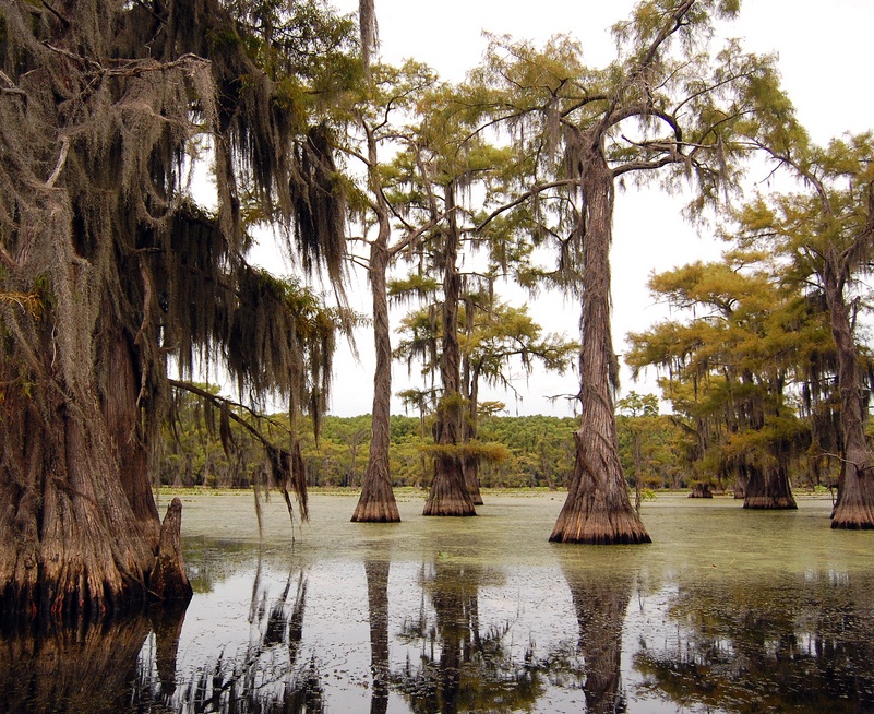 16. На озере растут около 190 видов кустов и деревьев, из них самыми известными являются так называемые “лысые” кипарисы (Bald Cypress). В отличие от своих сухопутных сородичей, эти кипарисы – не хвойные, а лиственные деревья, сбрасывающие свою листву на зиму. Возраст кипарисов, произрастающих в озере Каддо, составляет не менее 100 лет, а некоторые из них еще старше, есть даже 700-летние деревья.