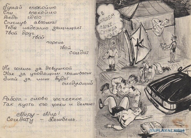 В общем, отправляясь на дембель, мне не хотелось увозить с собой дембельский альбом, в его совковых традициях. И я придумал сделать дембельский блокнот, с зарисовками солдатской жизни и стихотворным армейским фольклором, во всей его примитивности и убогости. Уважаемые дамы и господа, вашему вниманию мой дембельский блокнот. Может быть кому то это послужит гидом, ввода в армейские будни, а кому то хорошими воспоминаниями и желанием поделиться своими историями. С уважением, старший сержант запаса.