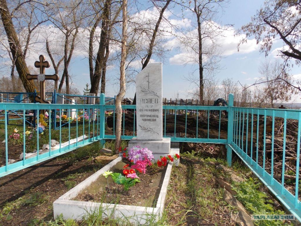 Спустя десятилетия сельчане заменили заржавевший железный памятник на мраморный. Надпись на нем гласит: «Петр Семенович Исаев. Порученец Чапаева».