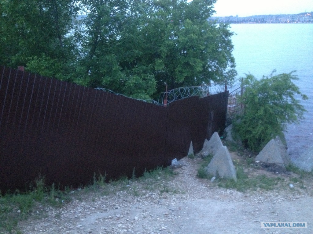по закону 20 метров от воды...но всем плевать, огородили и всё...мрази...всю жизнь там прожил, пришли и всё устроили по-своему...