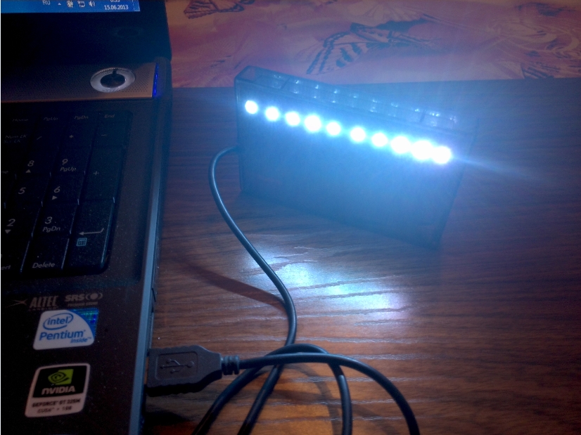 я на заднюю панель моника установил две ленты свето диодных,3 белых,1 синюю.светят в стену,клаву видно,глаза не напрягают,домашним как ночник,когда комп включен..