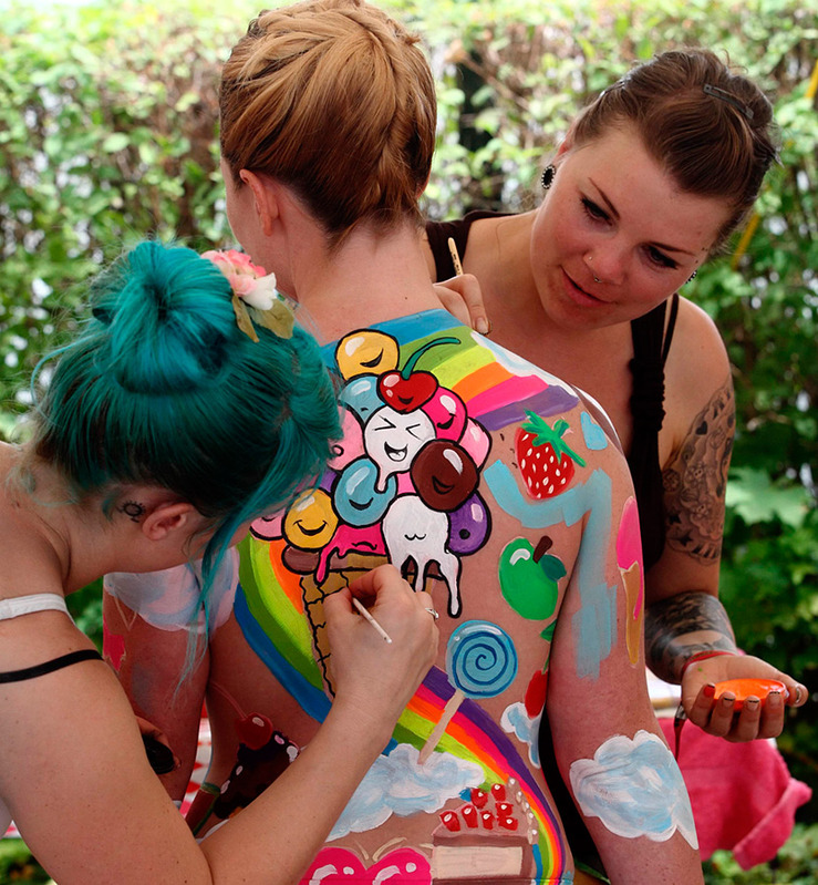 Посетители могут не только полюбоваться расписанными людьми, но и попробовать свои силы на мастер-классах. В программе фестиваля показы мод, выступления музыкальных коллективов и ди-джеев и много других интересных вещей.