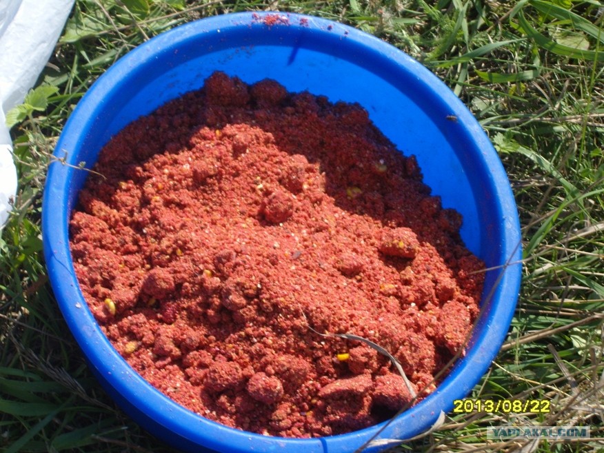7. Прикормка осталась со вчерашней рыбалки, поэтому использовали ее.