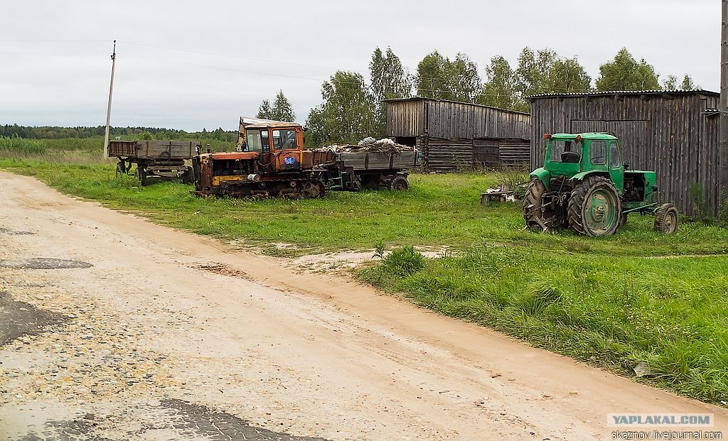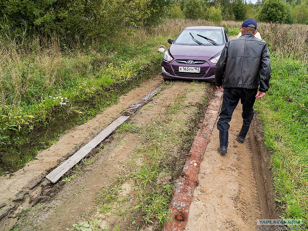За 500 метров до точки грибоохоты мы по собственной глупости увязли напрочь на грунтовой дороге и ближайшие полтора часа никакие средства и способы вытянуть машину к успеху не привели. Было решено идти искать помощь по почти нежилым населенным пунктам.