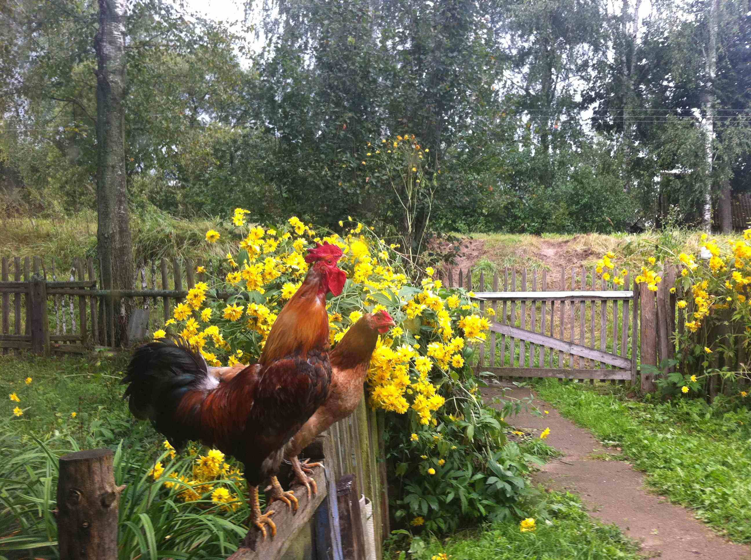 Петух. Е..нутый на весь клюв.Кидается на всех- от собак до людей. Кому, бл/ть, они нужны, эти твои куры?!