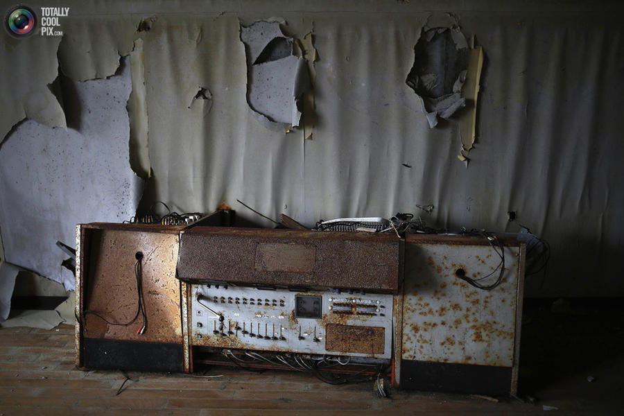 13. Панель управления системы оповещения внутри разрушенной начальной школы на уничтоженном цунами прибрежье эвакуированного города Намие.