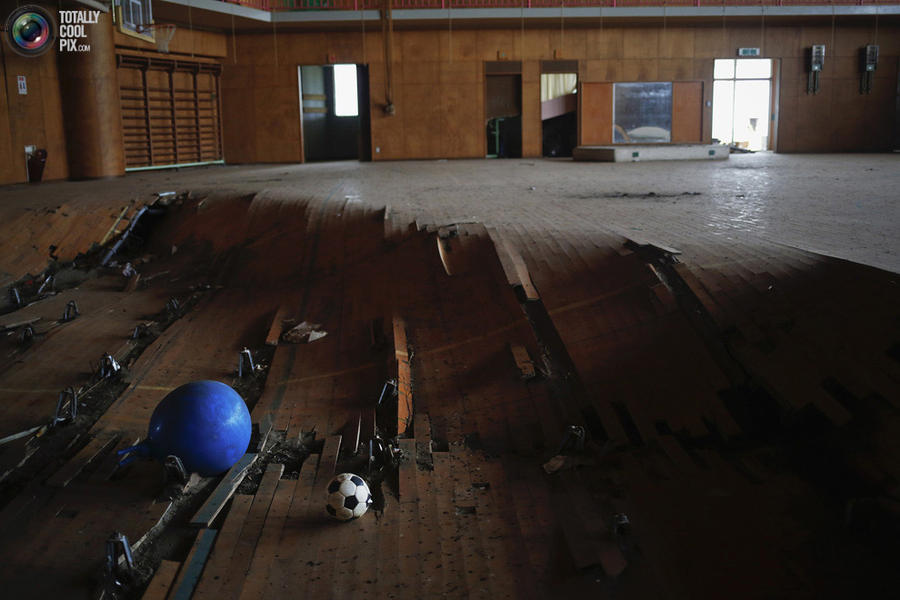 14. Мячи внутри разрушенной начальной школы на уничтоженном цунами прибрежье эвакуированного города Намие в префектуре Фукусима.