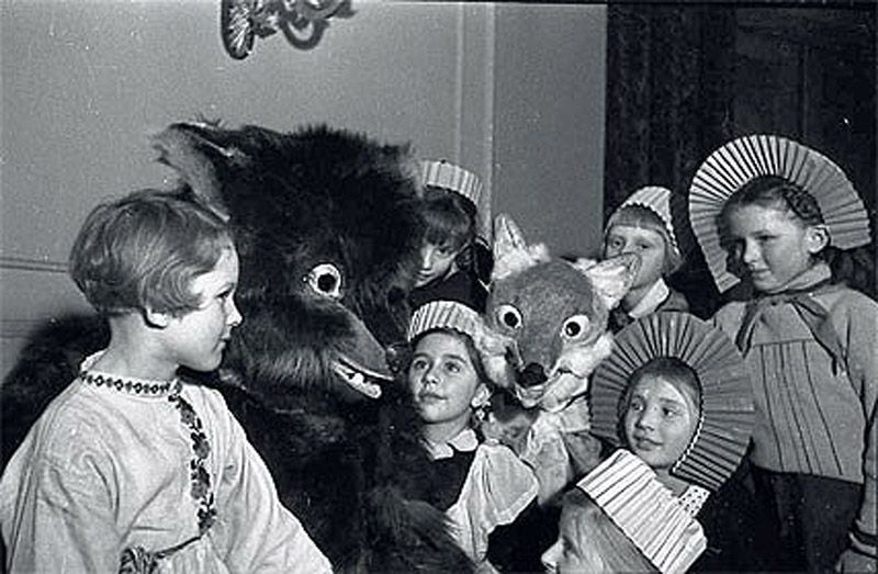 14. Во-вторых, нужно было обеспечить ребенка билетом на Новогоднюю елку, подарком, костюмом снежники из марли или нарядом зайчика и мандаринами. Подарок, в составе которого были и карамельки, и яблоки, и грецкие орехи, предоставлял родителям профком. Мечтой каждого ребенка было попасть на главную елку страны – сначала в Колонный зал Дома Союзов, а после 1954 года – на Кремлевскую елку.