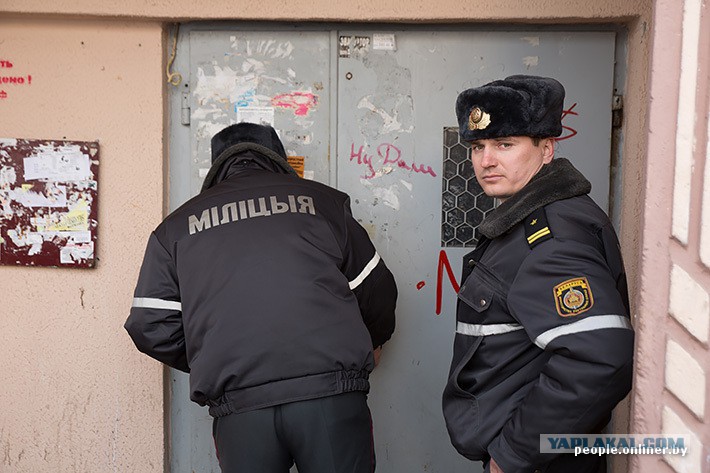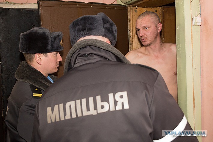 Улица Якубовского. Замызганная «панелька», серый типовой двор. Сотрудники милиции Фрунзенского района стучат в дверь одной из квартир, а нас просят отойти в сторону. Вскоре становится ясно, почему. Из-за двери показывается лысый череп, потом его хозяин с голым торсом. Ведет себя агрессивно.