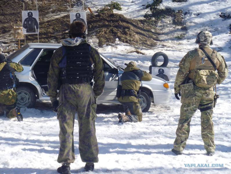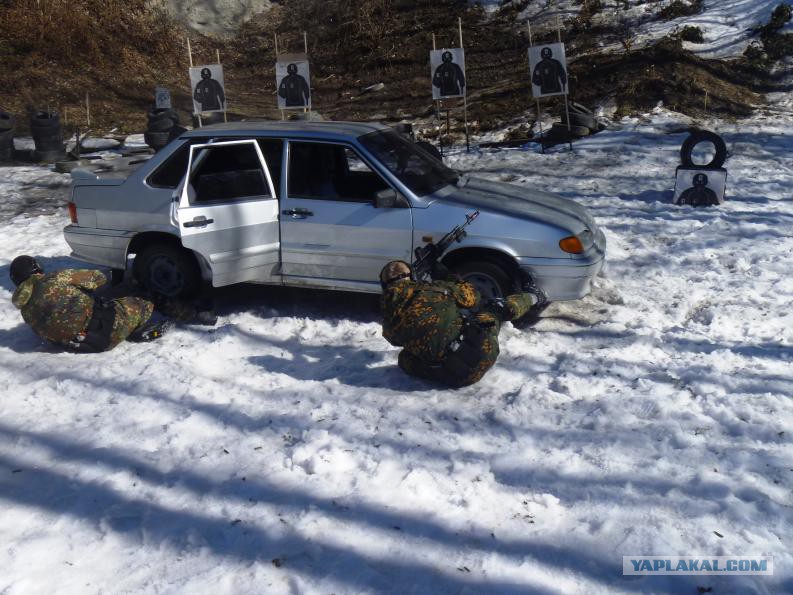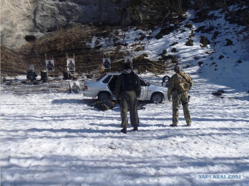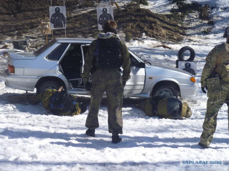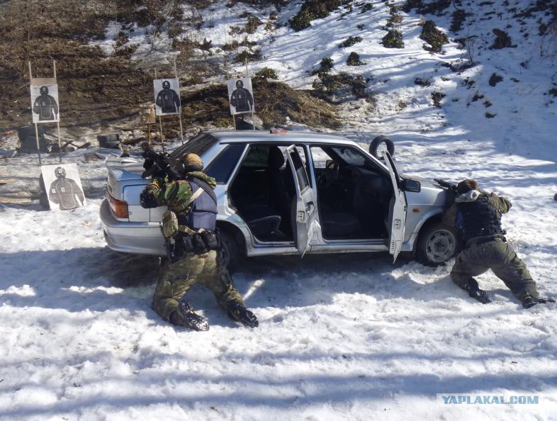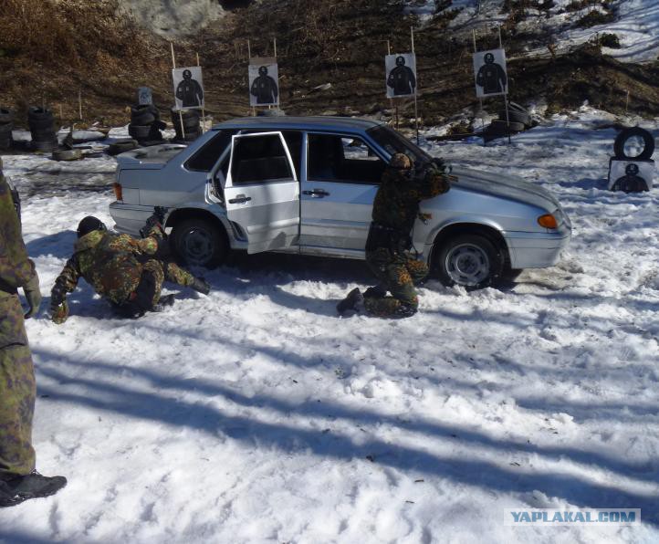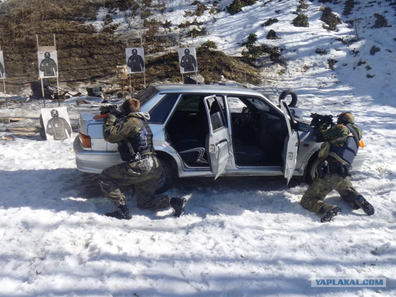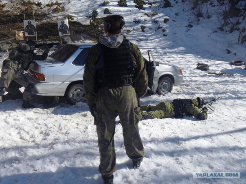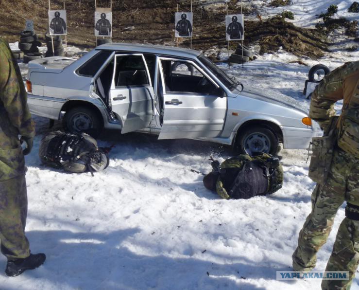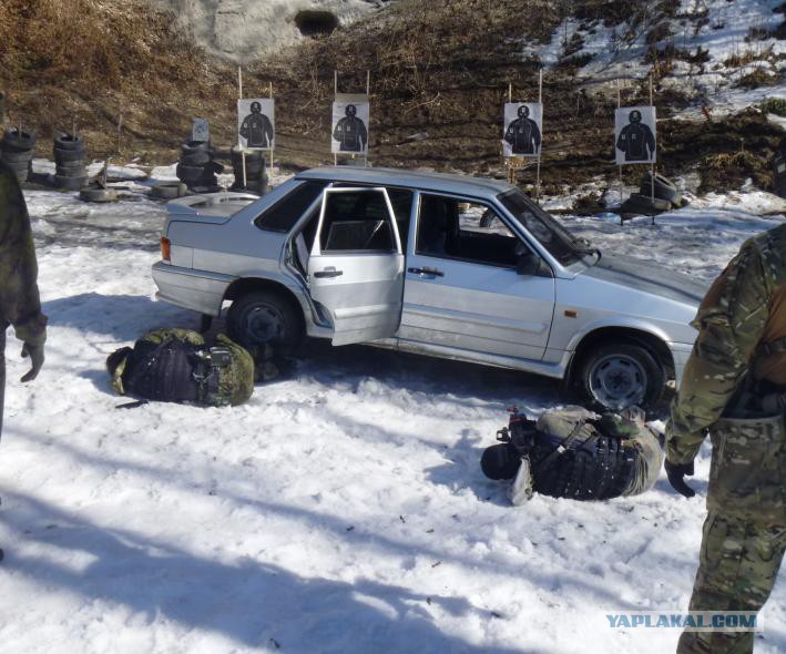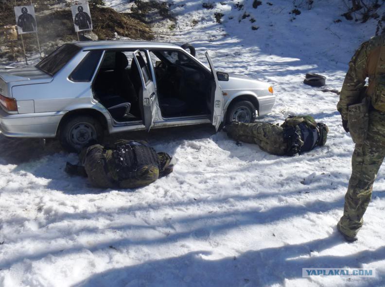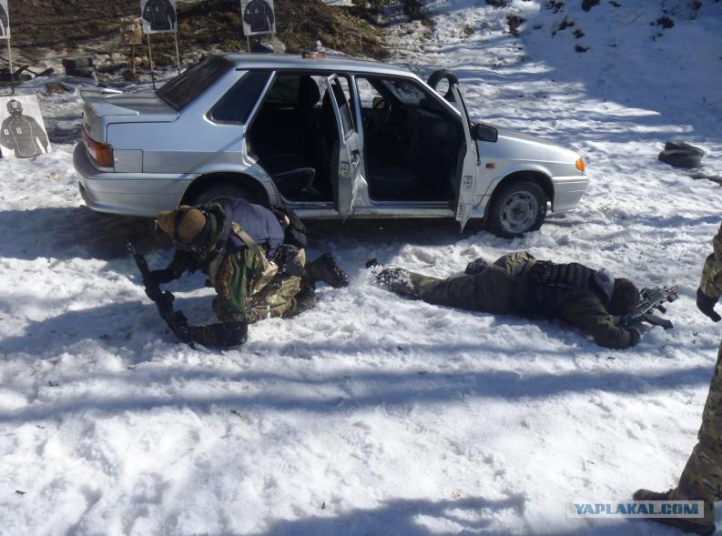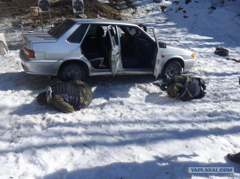 Я уже писал о том, как проходят такие тренировки. Но тогда отрабатывались отдельные элементы - выпасть из автомобиля и занять позицию. В данном случае - полноценное занятие - выпасть, открыть огонь, вытащить из под обстрела раненного, поразить мишени.