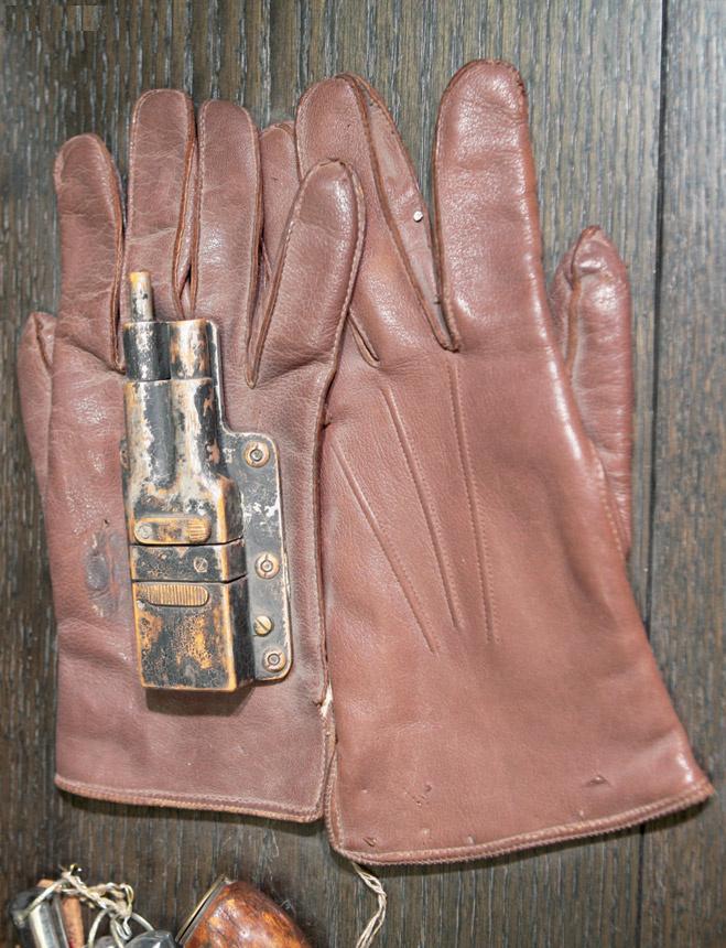К правой перчатке привинчен однозарядный пистолет. Для достижения эффекта неожиданности негодяй прячет правую руку за отворот одежды или в карман. Пистолет срабатывает от толчка кулаком в спину или грудь жертвы.
