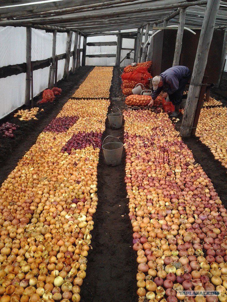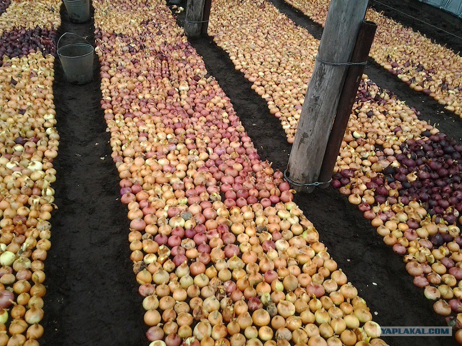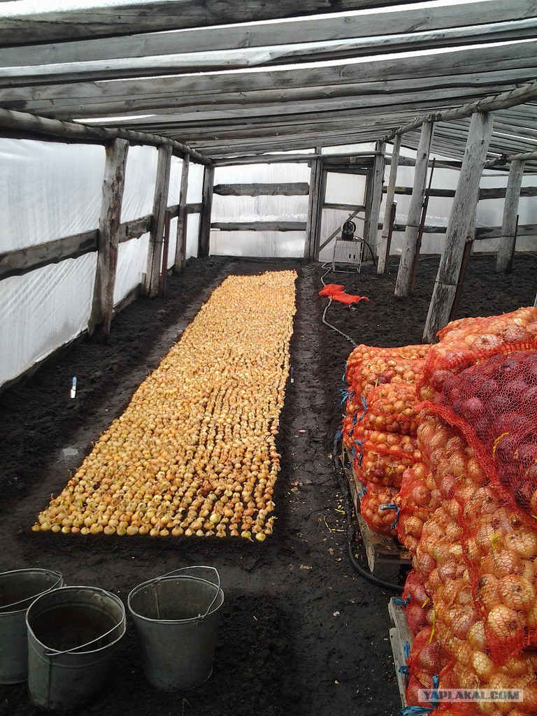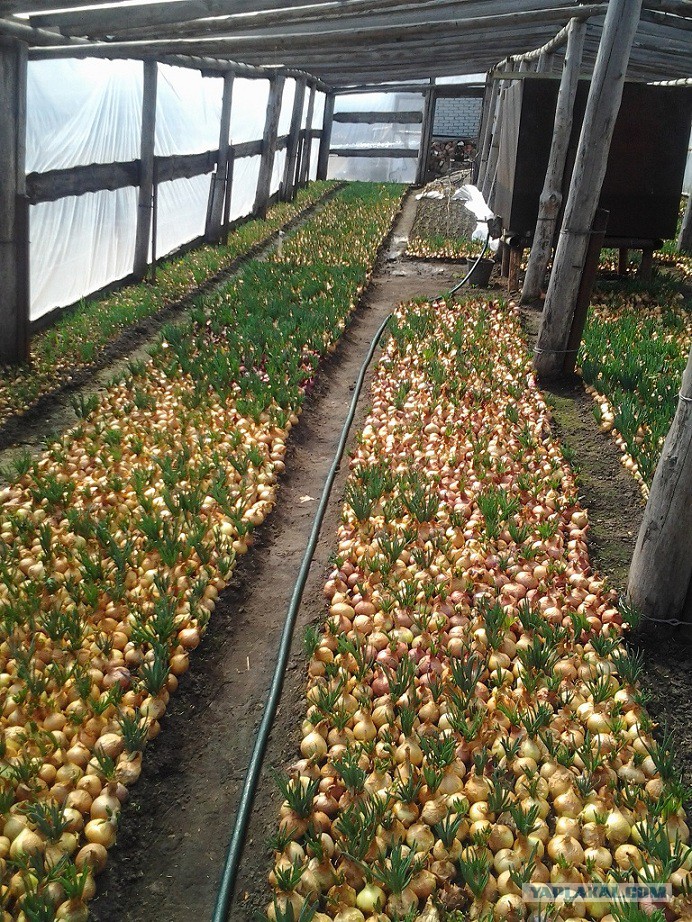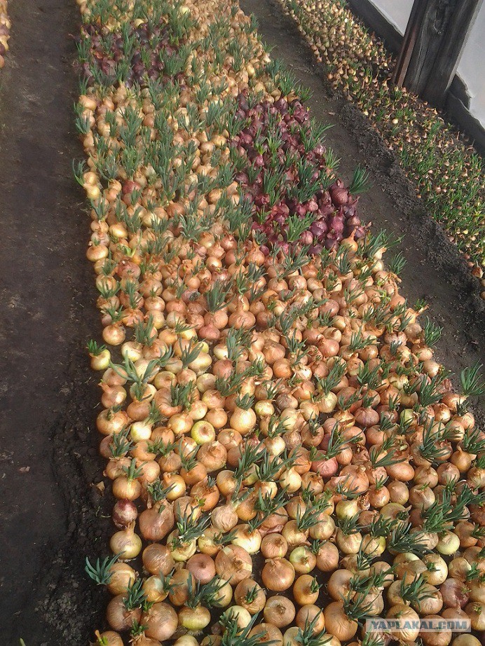 Достаем из подвала лук, и начинаем садить. К слову репка для посадки выращивается так же своими силами.