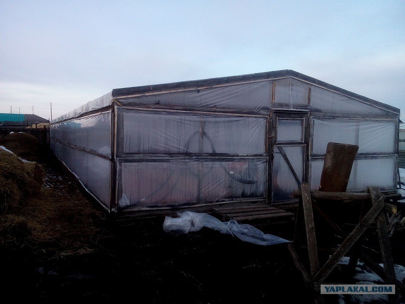 В третьей теплице, она так сказать продвинутая, каркас из железных труб, посередине ничего не мешает