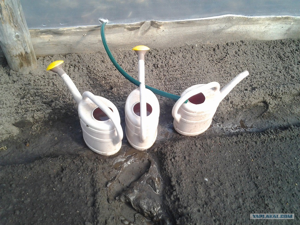 Первый полив в ручную лейками, так как земля рыхлая и после насоса все семена смоет