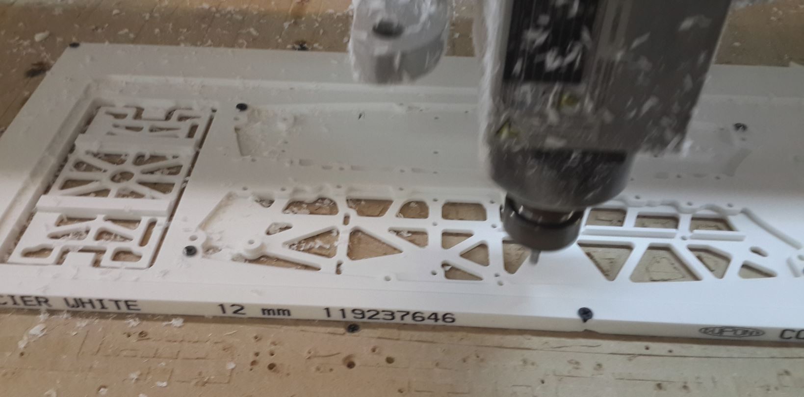 теперь самое главное проверить как это все соберется, тк 3д модель это хорошо, но вот бывает так что стандартные компоненты которые я покупаю могут отличаться, что нужно сделать? да нужно порезать раму, но тк дюраль резать просто так, чтоб потом выкинуть жалко, тогда режем из твердого пластика который искусственный камень (Carian)