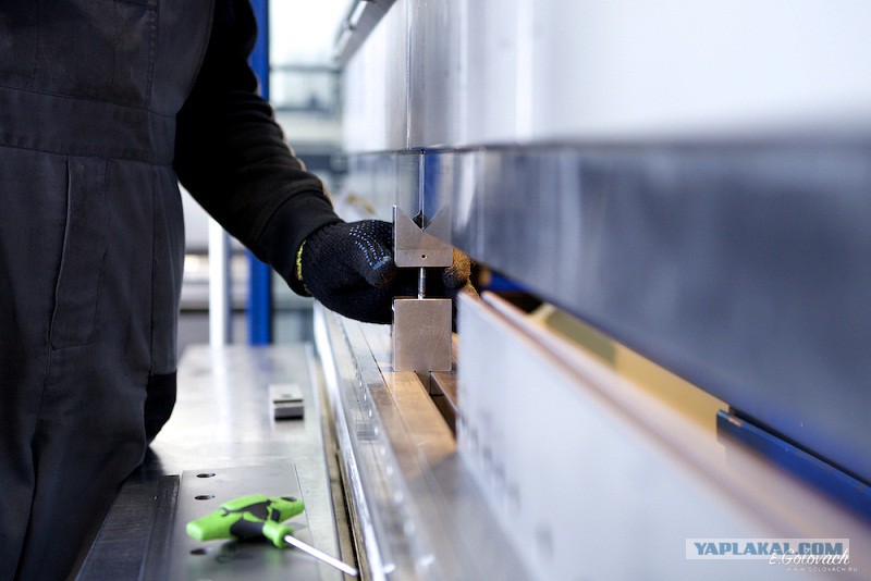 Полотно двери делается из целого листа стали на станке TRUMPF TRUMATIC TC3000R с использованием специального роликового инструмента. Стальной лист станок прокатывает роликом как нож-диск режет пиццу.