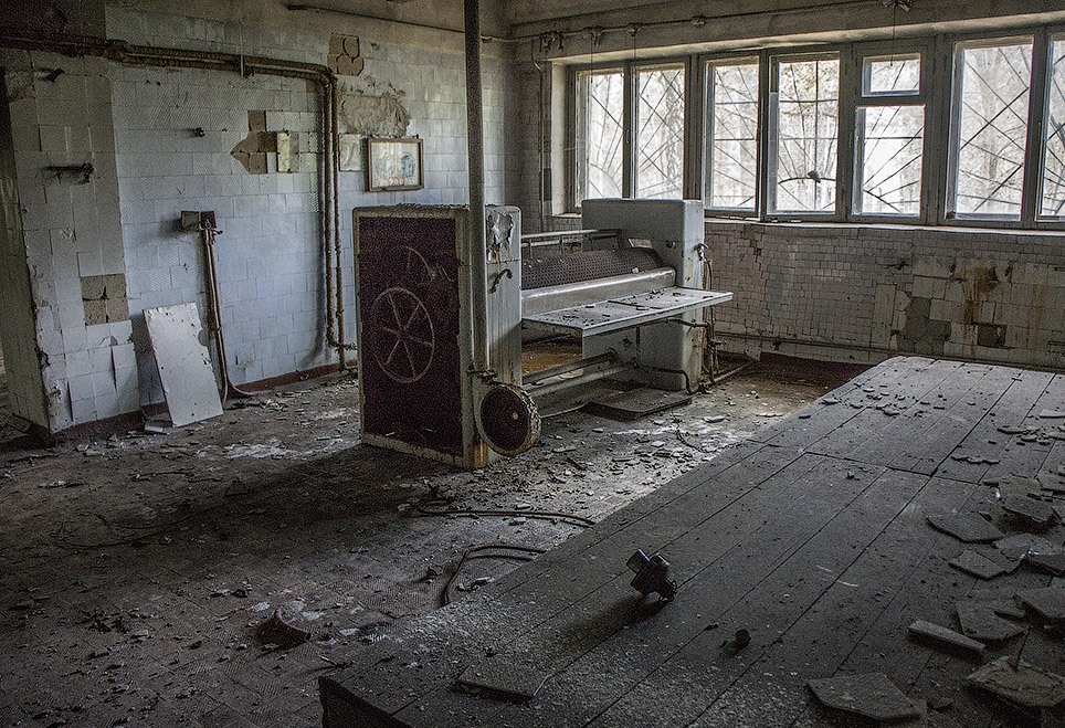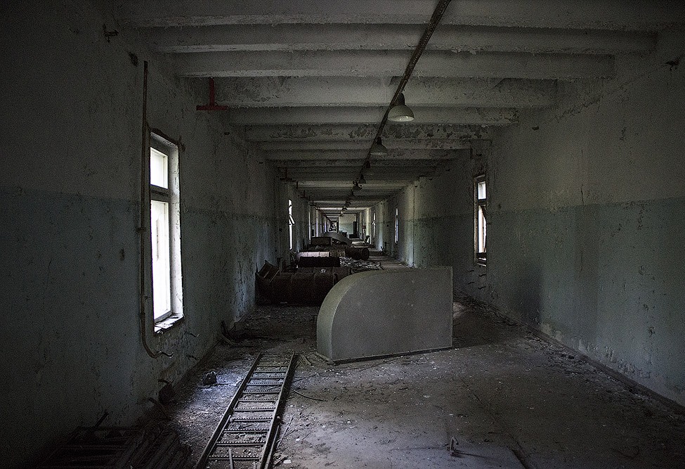 Остатки прачечной с остатками оборудования. Еще есть на что посмотреть из оборудования, мародеры не все растащили. Осталась даже большая чугунная ванна.