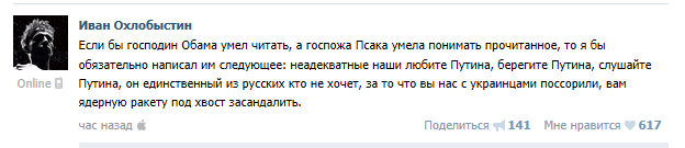 А Иван что, хочет засандалить кому-то ядерную ракету? Хочет так вот просто развязать ядерную войну? Ну тогда у Ивана не все дома.