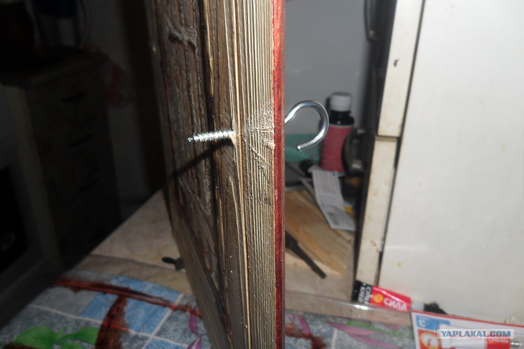 18. Крючки были с длинной резьбой, пришлось пилить. Полотном и руками. Кусачек не было, палец проколол. Вроде обошлось.