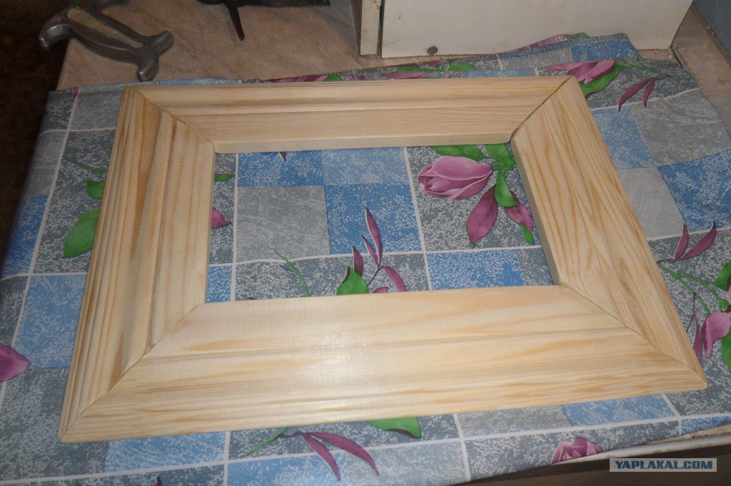 1. Для начала побегали по картинным галереям лавкам, искал широкую рамку и чтобы красивая была. Особенно выбора не было в нашем городе. Решил сделать сам. Купил обналичку дверных проемов в хозмаге, дерево сосна - понравилась фактурой и мягкостью.