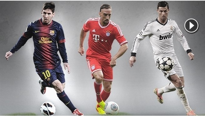 Лионель Месси, Франк Рибери и Криштиану Роналду попали в шорт-лист из трех претендентов на награду Лучшему футболисту Европы-2012/13 по версии УЕФА.