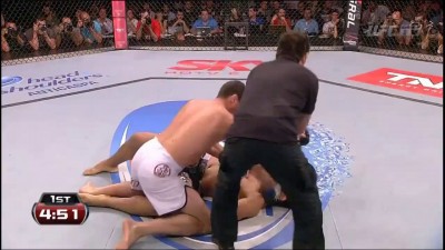 Протеже Витора Белфорта Сезар Феррейра огорчил этим вечером бразильских десантников, быстро расправившись с Тиаго Сантосом. Всего 47 секунд понадобилось "Мутанте", чтобы захватить шею соперника в тиски гильотины и заставить его сдаться.