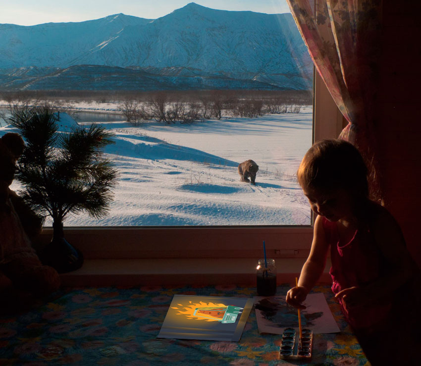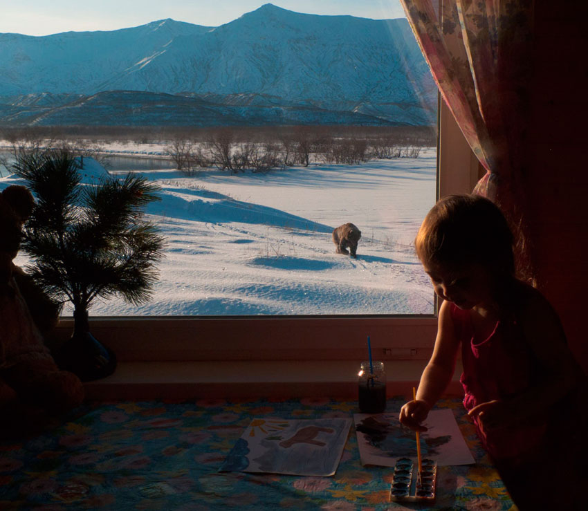 классное фото.потрясающий вид из окна.и даже медведь на фото не кажется угрозой))очень очень очень красиво))