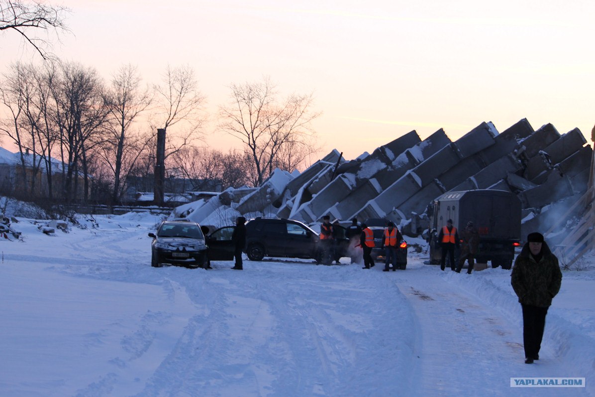 Сегодня присутствовал при сносе старого промышленного здания. Закладка зарядов процесс тайный, сопряжен опасностями, обложен всякими техниками безопасности, поэтому сфотографировать не удалось... ну и что б взрывчатку на сувениры не растащили - никого левых внутрь не пустили
