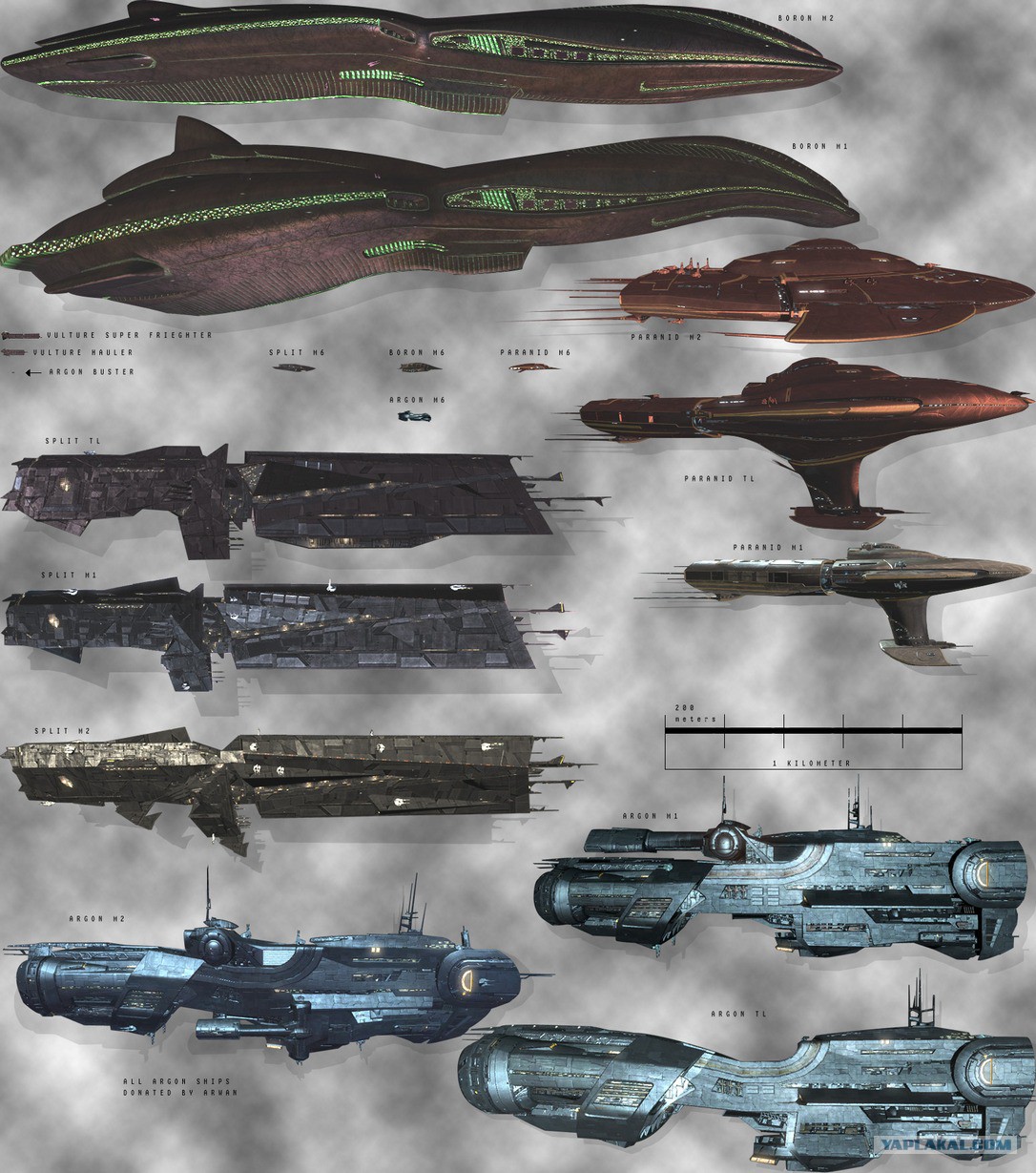 Звездолеты. Сравнение размеров, от малюток, к самым гигантским