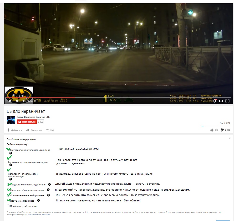 Хотел пожаловаться в ютубе, не смог выбрать причину.